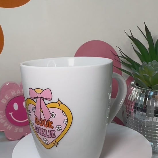 Perfect for the book lover who runs on caffeine and literary dreams, this 12 oz coffee mug brings cozy vibes to your morning routine. Featuring an adorable heart design that celebrates all things bookish, it's the ideal companion for curling up with your latest read. Durable ceramic construction keeps your coffee hot while you lose yourself in the pages. Whether you're gifting it to a fellow book girlie or treating yourself, this mug adds a touch of charm to your daily brew.
